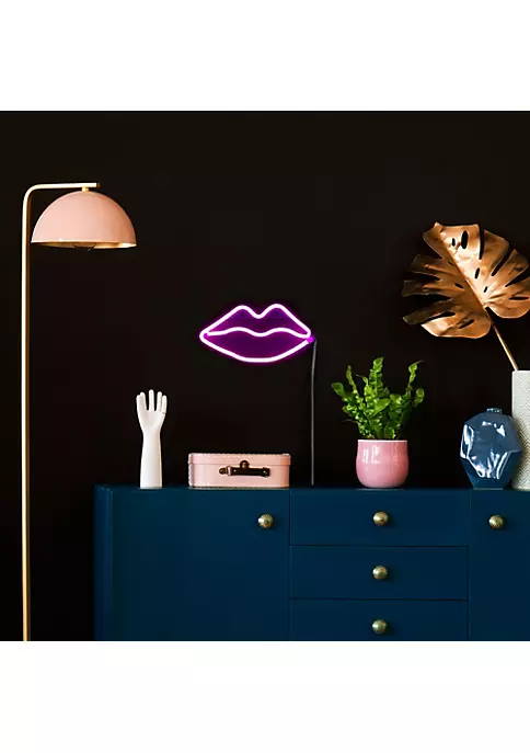 Light up your walls with our modern neon style lighted wall sign! The classic lip silhouette is a must for Valentine’s Day decorating. It comes ready for hanging with keyhole hooks at the top.