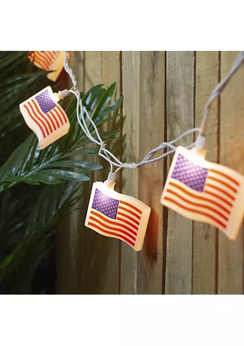 Display your patriotism this Fourth of July with our string of American flag lights. String these luminaries along your mantel or around your patio and revel in their warm festive glow. It is also perfect for Memorial day decorating.