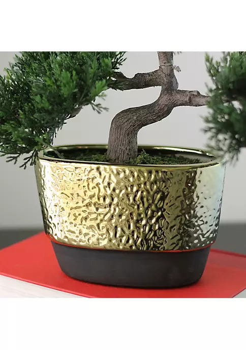 Don’t let your brown thumb hold you back. Show off your love of plants with this beautiful artificial Japanese Bonsai tree. Held in a lovely golden base with faux dirt for a realistic look. Easily maintained this artificial succulent is perfect for your home or office.