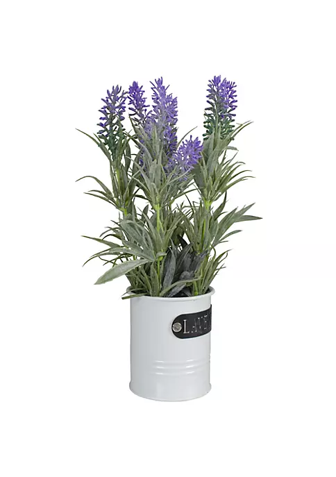 Don’t let your brown thumb hold you back. Show off your love of plants with this beautiful intriguing artificial lavender. Encased in a white tin can labeled lavender this piece is sure to give your decor a charismatic look. Easily maintained this artificial flora is perfect for your home or office.