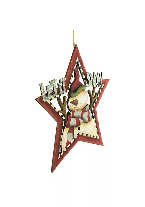 Add this wall decor to your holiday decorating this year! Featuring a red star with a snowman in the middle and is accented with “Let it Snow” in silver print. This will make the perfect addition to your doors walls windows over your mantle or anywhere you want to add a little holiday cheer.