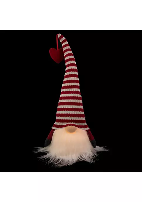 Gnomes are best known for guarding Earthly treasures providing good luck and are perfect for protecting your goodies. This gnome is wearing a red and white striped hat with a little heart that dangles from the end. The gnome’s body lights up by a white LED light. The gnome had the traditional long white beard with its bulbous nose poking out from under his hat. Place this gnome on your mantle or on any table of your choice for a fun festive touch.