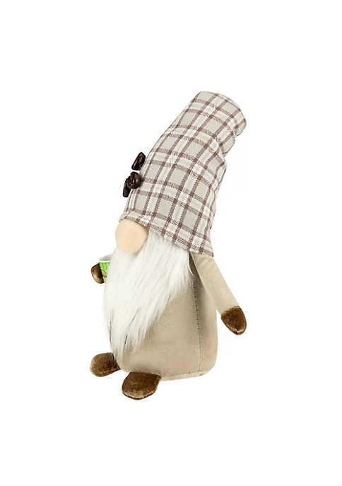 Gnomes are best known for guarding Earthly treasures providing good luck and are perfect for protecting your goodies. This gnome is ready to protect your cup of coffee for you. Wearing a beige plaid hat with coffee bean accents paired with a matching sweater. This gnome is holding a cup of coffee in his hand ready to take on his busiest of days. Place this gnome on your mantle in your coffee shop or alone in the center of your table.
