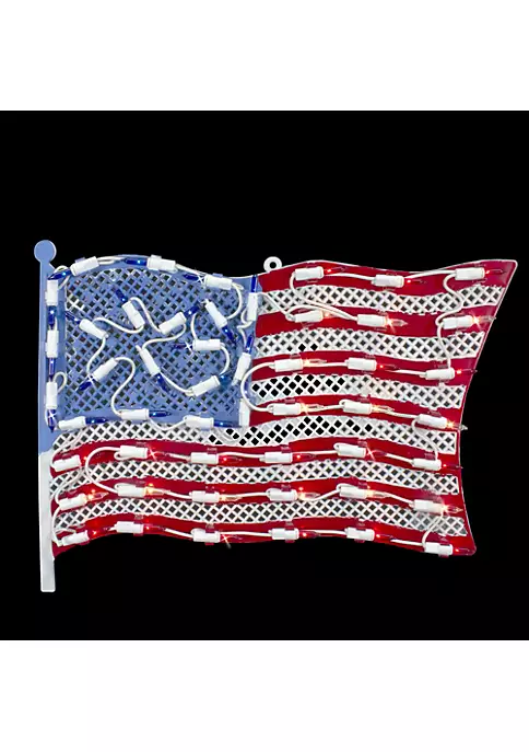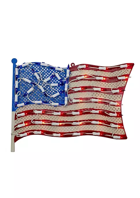 Display your patriotism with our 4th of July American flag decoration. The flag itself is red white and blue and features clear red and blue incandescent mini lights. It includes a suction cup and is ready for hanging. If one of the bulbs burns out the rest will stay lit. Also perfect for your Memorial Day and Labor Day parties.