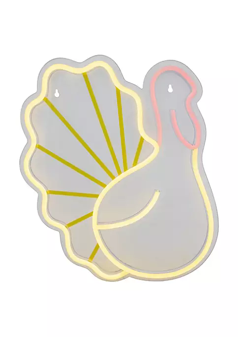 Freshen up your holiday decor with this modern neon style turkey silhouette. Vibrant bulbs add light and color. The perfect statement piece for walls or windows. Easy installation makes Thanksgiving decorating a breeze.