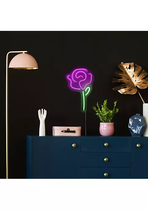 Light up your window bedroom or bar with our modern neon style wall sign. This unique accent piece comes ready for hanging with pre-drilled holes at the top. You can hang this on a wall or use it as a window sign.