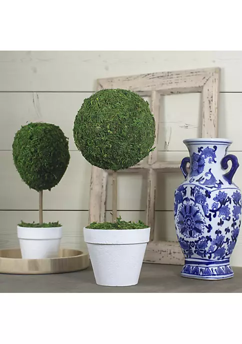 Surrender a pleasant atmosphere to your friends and relatives who have come united for an ideal get together by this green moss ball topiary tree. Suitable for any vignette this potted floral decorative is sure to box applauses from your friends. Be stuck on the loveliness it portrays through its eye-catching details.