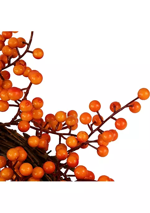 Capture the feeling of a crisp fall day with this beautiful autumn wreath. It features red and orange berries with a brown twig backing that will give a pop of color to your home dรฉcor. Display this vibrant wreath on doors walls windows or over your mantle.