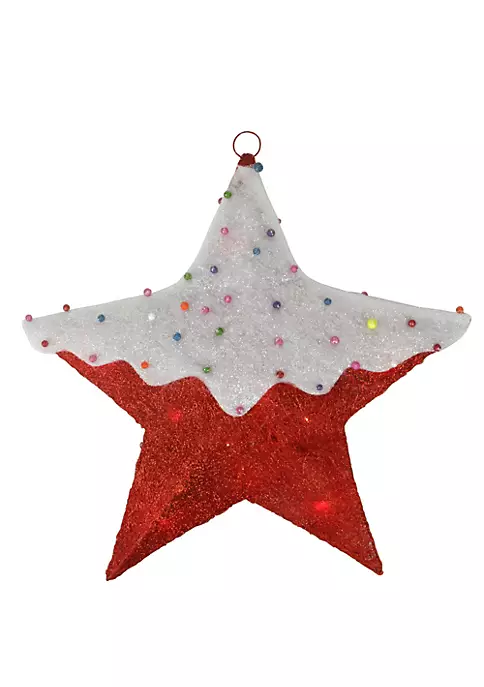 It’s time to sink in the riveting beauty of this adorable Christmas window decor! Showcasing a snow-covered star this pre-lit decorative piece comes with a dusting of glitter and colorful faux candies thereby adding a wintry touch to your home. Hanging this lovely accent is quite simple as it includes an attached loop.