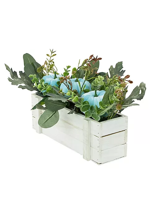Fall harvest box with sky blue pumpkins