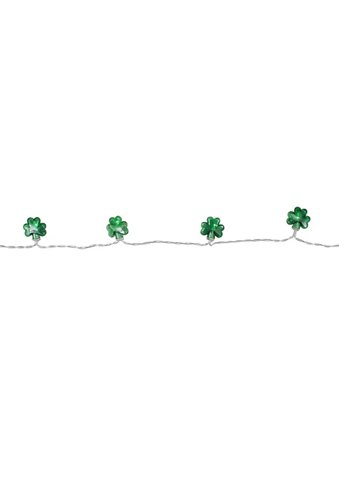 Spread a little luck of the Irish with these novelty shamrock string lights! They feature 20 mini green shamrocks on a clear wire with a battery pack. The battery pack has an on/off switch and the best part is that if one bulb goes out the rest stay lit.