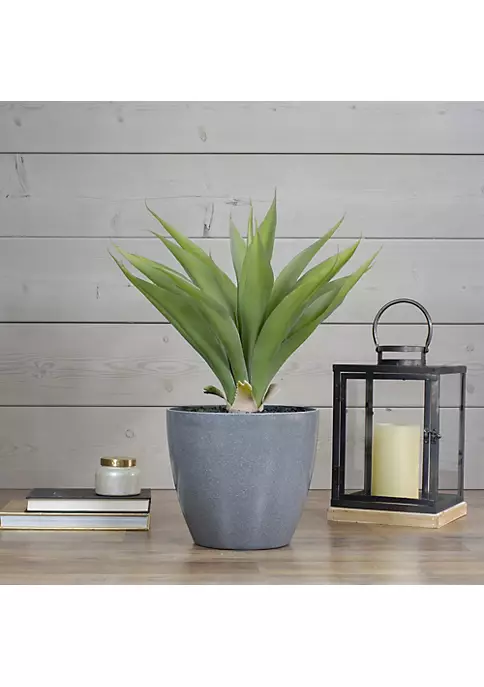 Don’t let your brown thumb hold you back. Show off your love of plants with this artificial agave arrangement. This faux agave plant is held in a gray pot that is nestled inside of faux dirt and stone for a realistic look. Easily maintained this artificial plant is perfect for your home or office.