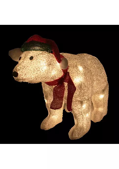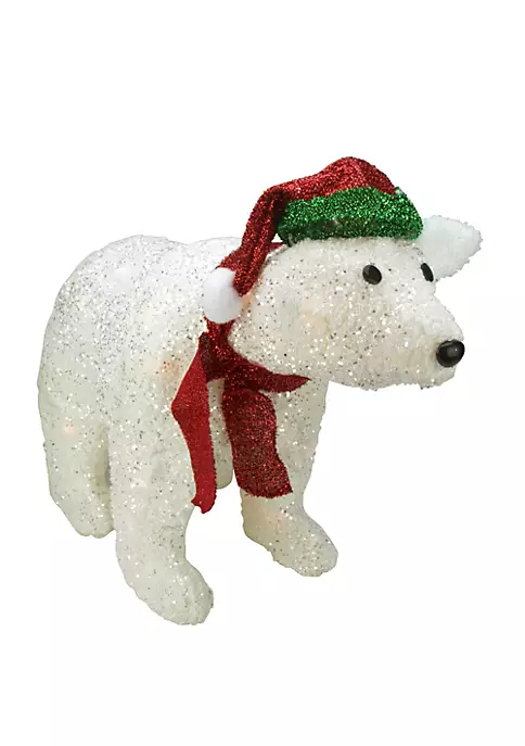 Polar bears add that unmistakable holiday feel. With a plush body that is accented with large silver glitter flakes and a Santa hat this bear offers just the right amount of light for that welcoming feel. Perfect on a porch or lawn you can also place it indoors.