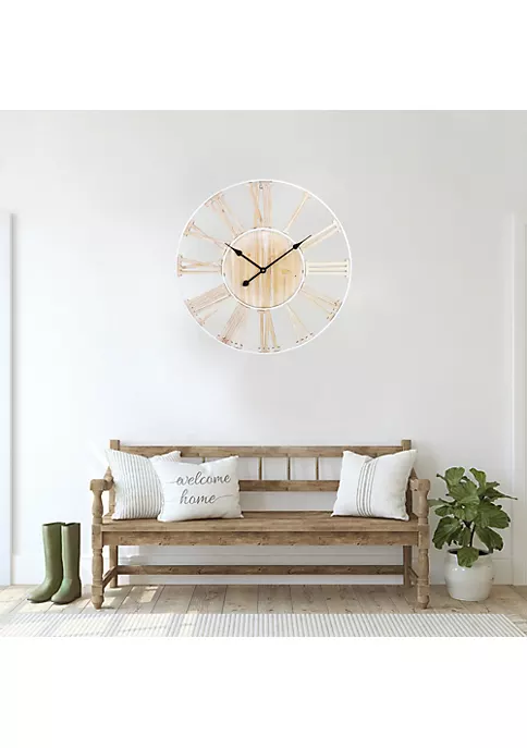 This unique clock is designed with whitewashed roman numeral numbers. A great wall piece for an industrial decor design. You don’t have to worry about electric cords since it is battery-operated.