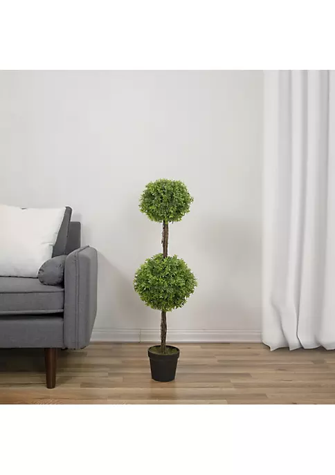 Add some color to any space while livening it up with our artificial double sphere boxwood plant. This true-to-life faux potted plant is beautifully realistic with perfectly shaped spheres. Bring the charm of the outdoors to your indoors with this lovely piece of greenery and never worry about watering or pruning! This plant will make a great addition for years to come to any space whether it be your home office or place of business.