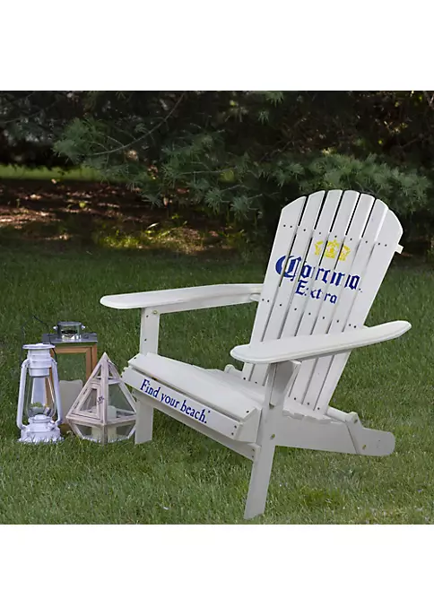 Enjoy a lazy summer lounging by the pool or in the sun in this timeless chair. Our folding Adirondack is a great way to sit back and relax in the outdoors. This chair has the Corona logo in the back of the chair and the seat of the chair reads ‘Find Your Beach’. The folding feature allows for ease of storage when the chair is not in use. This iconic chair is perfect for pool decks patios or just a fun rustic lounging space for around the firepit. Grab 1 or 2 of these awesome folding Adirondack chairs today!
