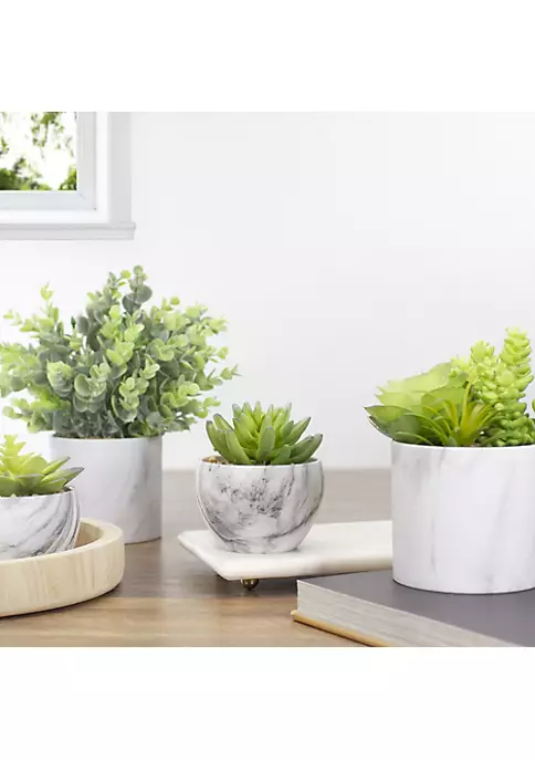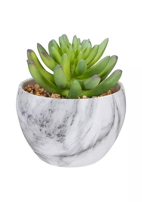 Succulents have become a growing trend as they are easy to care for and require little attention. This artificial succulentis even better as it looks real but requires no maintence. The green succulent is nestled inside of white pot with a marble like finish. Grab yourself one or two of these succulents today to add some character to your home or office.