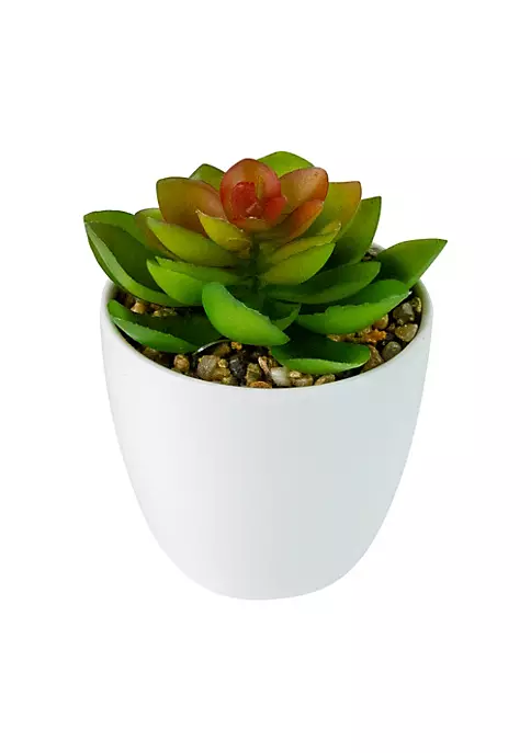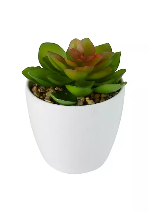 Succulents have become a growing trend as they are easy to care for and require little attention. This artificial succulent is even better as it looks real but requires no maintenance. The green succulent is nestled inside of the white pot. Grab yourself one or two of these succulents today to add some character to your home or office.