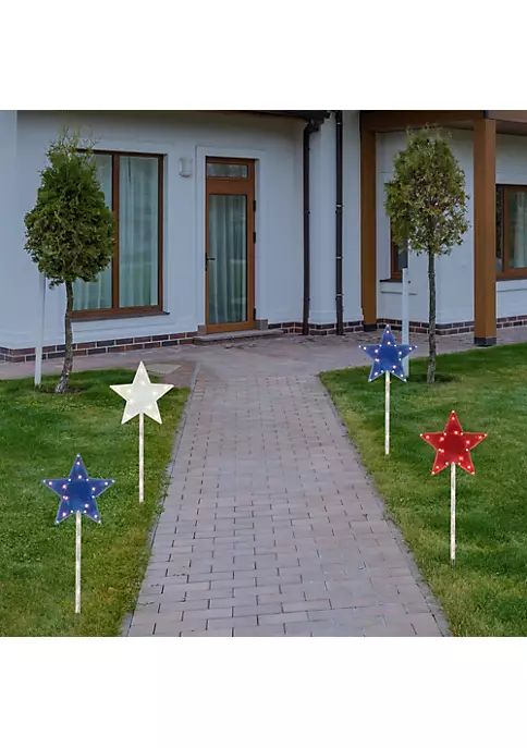 Festively line any driveway or walkway with these 4th of July star ground stakes. These patriotic decorations are not only festive but also light your path for easy navigation. Quick and easy installation lets you light up your walkway in minutes. The perfect decoration to welcome your friends and family to your home during the holiday.