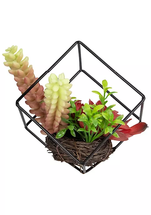 Don’t let your brown thumb hold you back. Show off your love of plants with this beautiful intriguing artificial succulent. Encased in a metal geometric frame this piece is sure to give your decor a charismatic look. Easily maintained this artificial succulent is perfect for your home or office.