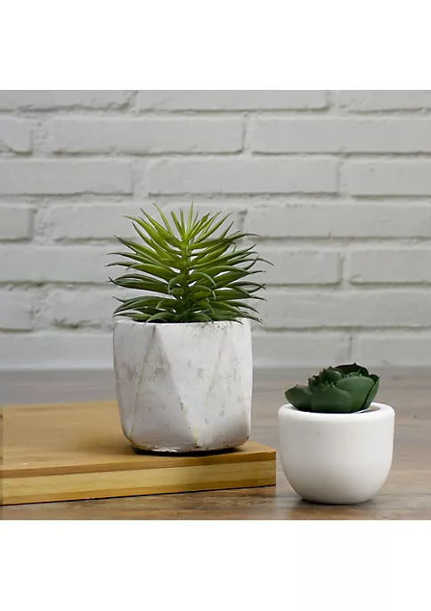 Don’t let your brown thumb hold you back. Show off your love of plants with this beautiful intriguing artificial succulent. Encased in a gray cement pot this piece is sure to give your decor a charismatic look. Easily maintained this artificial succulent is perfect for your home or office.
