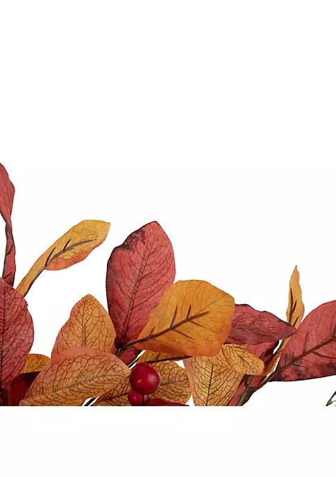 Bring all the colors of Autumn into your holiday decor with this harvest-themed garland. Fall leaves are accented with berries. Ideal for doorways hallways stairways mantles or as part of your Thanksgiving table centerpiece.