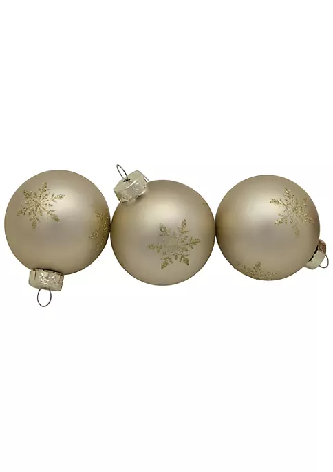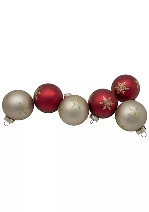 Glass ball ornaments are one of a kind! A classic shape with fresh designer colors these ball ornaments will allow you to build your collection quickly and decorate with more possibilities. These matte gold and red ornaments with glittered snowflake designs are great for Christmas and all the way through the New Year.