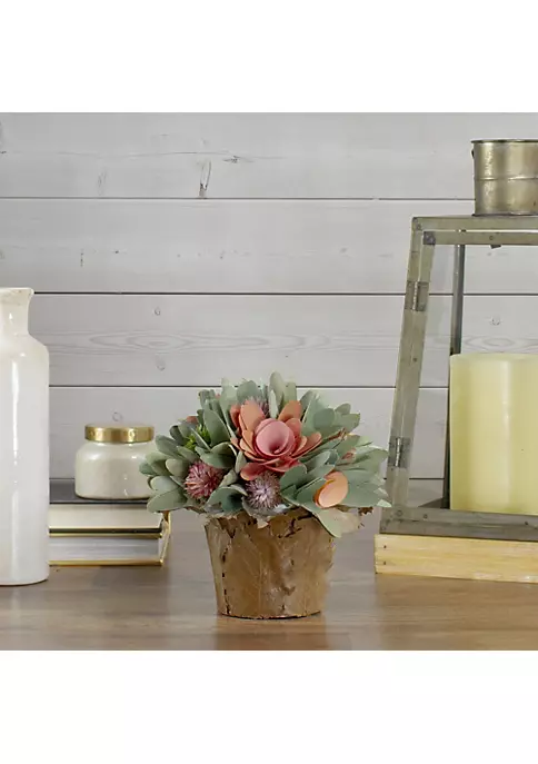 Wooden floral and foliage potted centerpiece