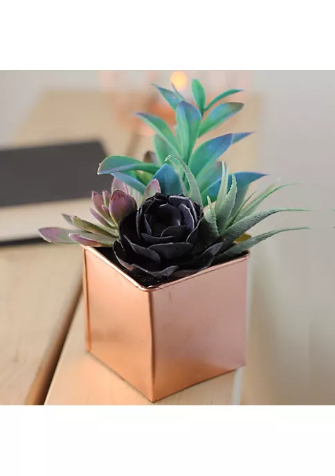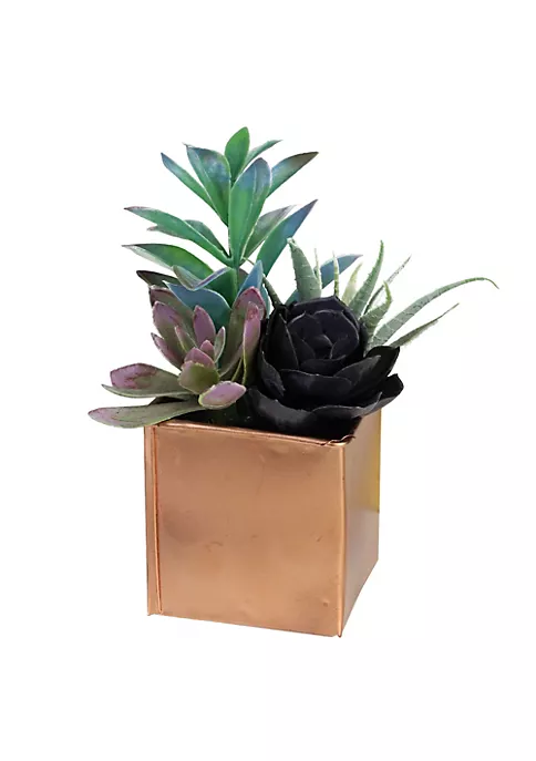 Don’t let your brown thumb hold you back. Show off your love of plants with this beautiful artificial succulent arrangement. Held in a lovely base with faux dirt for a realistic look. Easily maintained this artificial succulent is perfect for your home or office.