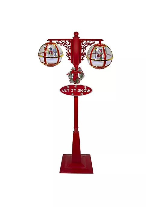 Let it snow! Bring the magic of outdoors inside and create a winter wonderland in your living room with this life-sized double street lamp. The lamp has dual water globes one has Santa Claus carrying his present bag and the other has a snowman that is dressed warmly. There is a cascading snowfall effect inside of the globes that creates the look of real snowfall inside this winter scene. You can add this lamp pole to any spot around your home!