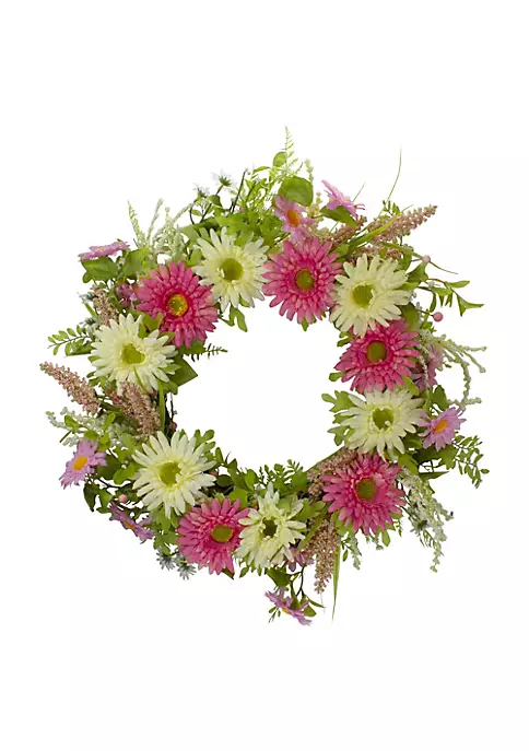 Add lovely pops of color to your home with our life-like artificial chrysanthemum wreath. Featuring realistic silk flowers intertwined with a natural grapevine base what better way to welcome guests and spring to your home.