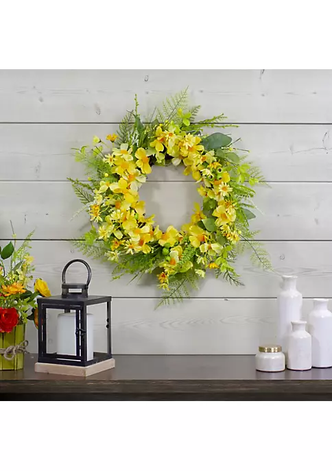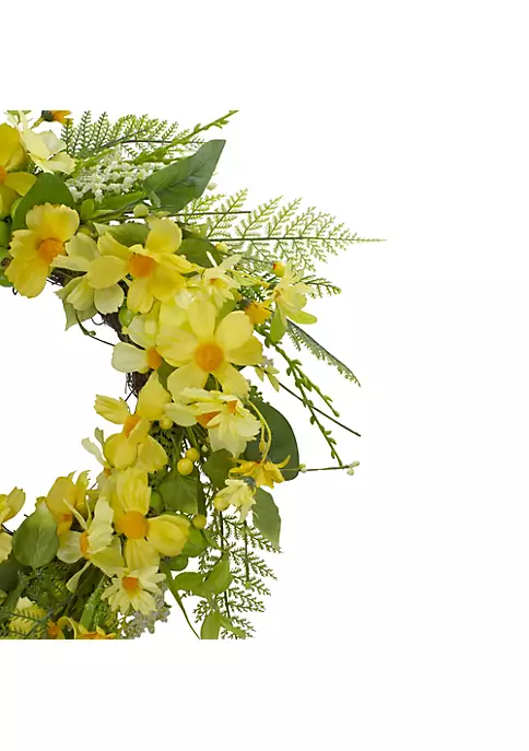 Add bright pops of color to your home with our life-like artificial berry and daisy wreath. Featuring realistic silk flowers intertwined with a natural grapevine base what better way to welcome guests and spring to your home.