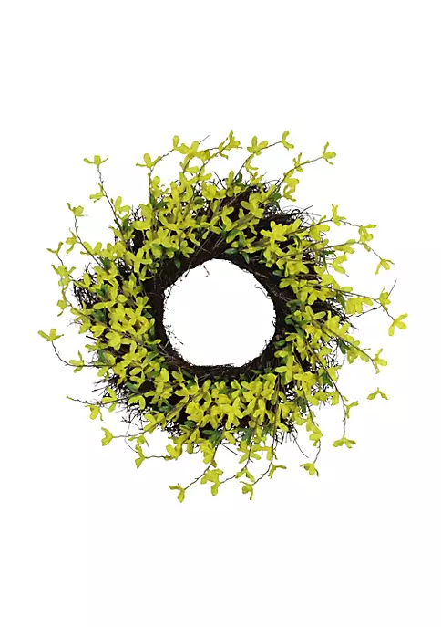 Spring and summer decorations are never complete without a charming wreath. This adorable wreath features forsythia flowers verdant foliage and a grapevine backing to create a luxurious look. This wreath works perfectly at home or the office bringing a bit of sunny cheer wherever you go.