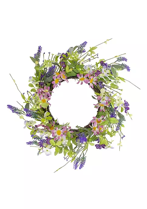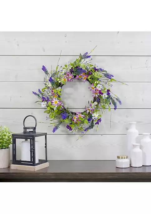 Add a pop of color to your spring and summer decor with this life-like artificial floral wreath. It features realistic lavender that is intertwined with green leaves and a plethora of wild flowers. Hang on any wall or door or use as a centerpiece with your favorite candle in the center.