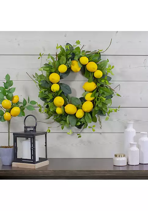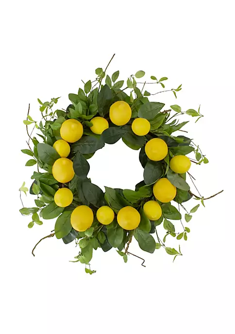 Add bright pops of color to your home with our life-like artificial lemon wreath. Featuring green foliage intertwined with a natural grapevine base what better way to welcome guests and spring to your home.