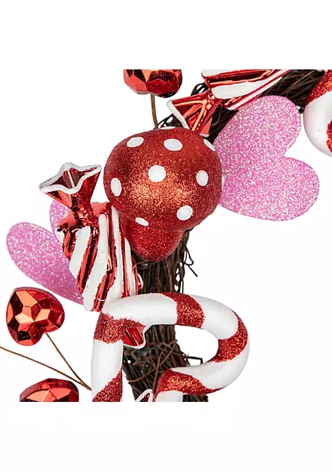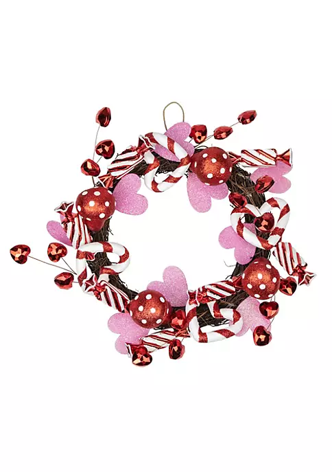 Add a touch of whimsy to your holiday decor with this sweet candy wreath. Featuring artificial candies ornaments and pink hearts. An ideal way to welcome your guests this Valentine’s day.