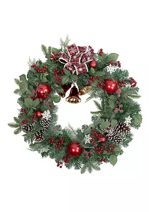 With the hustle and bustle of the holiday season you may not have enough time to fully decorate your home. This lovely pre-decorated wreath will make this year’s decorating a breeze. The jingle bells and large bow will add a festive touch. Perfect to hang over mantles and doorways or to use as a centerpiece.
