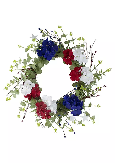 Red white and blue hydrangea wreath