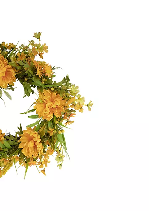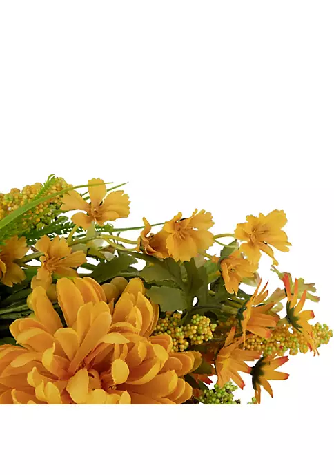 Capture the feeling of a crisp fall day with this beautiful autumn wreath. It features yellow peonies berries wheat and green foliage that will give a pop of color to your home dรฉcor. Display this vibrant wreath on doors walls windows or over your mantle.