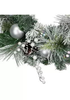 Brand new 🔔 Northlight Flocked Pine Artificial 🎄 Christmas Wreath with Iridescent Ornaments 24-Inch Unlit 💯